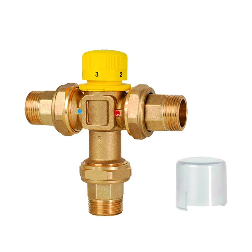 MISCELATORE TERMOSTATICO PER IMPIANTI SOLARI ATTACCHI A BOCCHETTONE FILETTATI MASCHIO